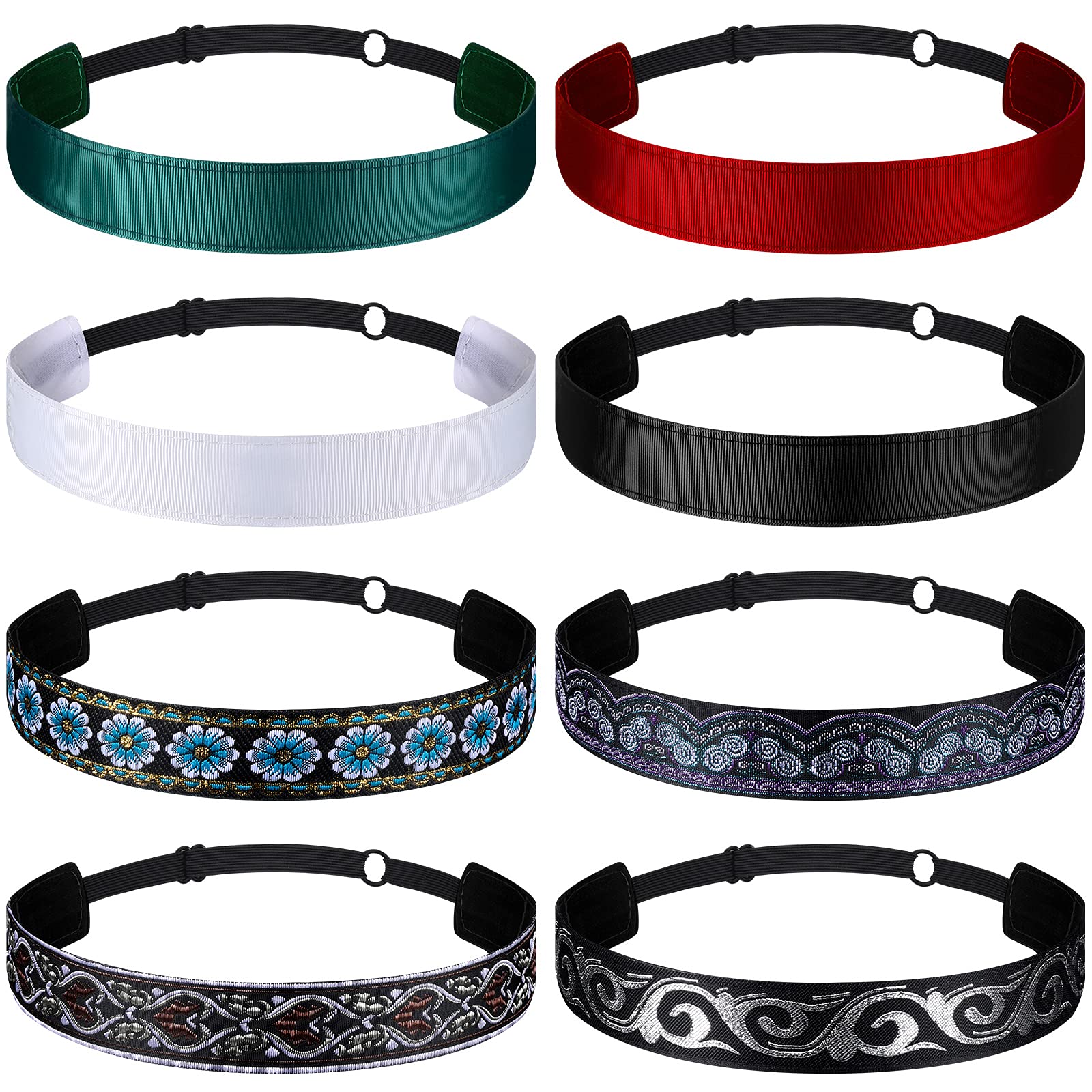 - Flexible and stretchable: these hair bands with elastic and adjustable design for a customized fit for most people's head shape, and won't bring pressure on your head, which means they won’t bring tightness. What's more, no matter how many times you look up, these headbands won't drop off the back of your head The lining fabric can increase the friction between the head and the hairband.