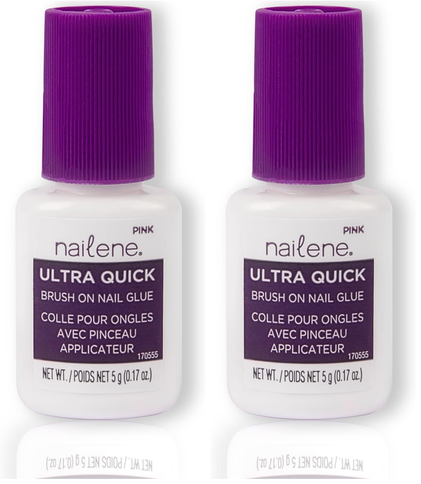 Nailene Perfect Bond Nail Glue, Super Strong, Durable, Easy to Apply Acrylic Nails, Press On Nails, Repairs Natural Nails, Quick Drying Nail Adhesive, Lasts 7 Days, Pink Tint, 2 g/0.07 oz, 2 Pack