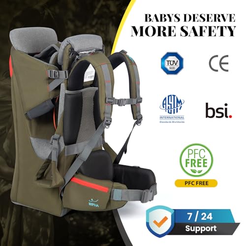 WIPHA Baby Backpack Carrier, Ergonomic Child Carrier Hiking with Sun Canopy, Safe Toddler Hiking Backpack Carrier with Large Storage Space&Insulated Pocket, Adjustable Padded Child Seat