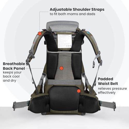 - 𝐌𝐀𝐊𝐄 𝐇𝐈𝐊𝐈𝐍𝐆 𝐄𝐀𝐒𝐈𝐄𝐑: Designed to save you from backache after long walks with your baby - With decent weight distribution, our kid carrier backpack makes it easier while carrying your baby out, fits both parents comfortably despite different sizes thanks to the flexible adjustable straps. The wide, padded waist belt takes the weight off your shoulders, making it feels like your baby weighs just half of what he/she does. Super comfortable to wear without feeling too much heaviness.