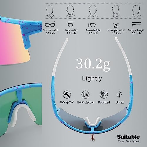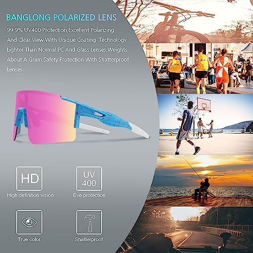 BangLong Cycling Sunglasses Polarized Sports Glasses for Men Women with 3 Interchangeable Lenses for Running Baseball Glasses