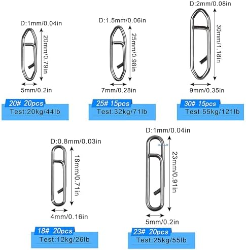 - ✅【Quick Change】The power fishing clips provide easier way for quick change between lures, rigs or leaders, no chance to pop open and lose your fishes. Compact and lightweight, no any effect on lures action