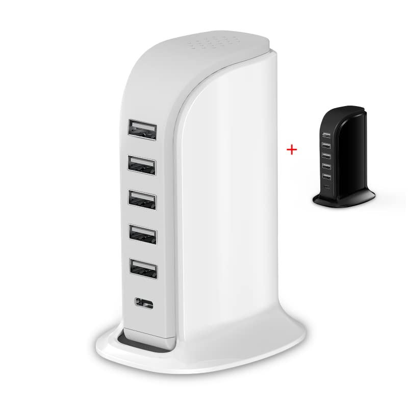 - 6 in 1 USB charger block with c port: Support 6 devices simultaneously, quick charger up to 2.4A for single USB port.