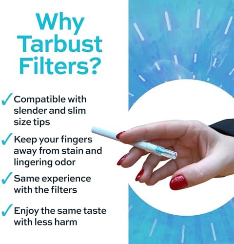 - STAIN-FREE AND LESS ODOR: Say goodbye to stained fingers and lingering odors! Tarbust filters keep your fingers clean and help minimize unpleasant smells from cigarette smoke. These cigarette filters are compatible with various smoking accessories, including cigarette holders and blunt holders. To ensure proper compatibility, we advise checking the different sizes of Tarbust filters.