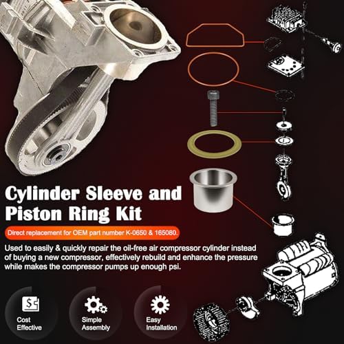 - 【High Performance】Direct replacement for OEM part number K-0650 both in quality and functions. Specially designed to easily & properly service the oil free air compressor pumps for Craftsman DeVilbiss cylinder, extends the life of the compressor and saves your money for a new one. (Recommended on Twin Cylinder Air Compressor Pumps that both cylinder sleeves and piston rings be replaced at the same time so that the air compressor pump will produce equal air output and not be out of balance.)