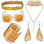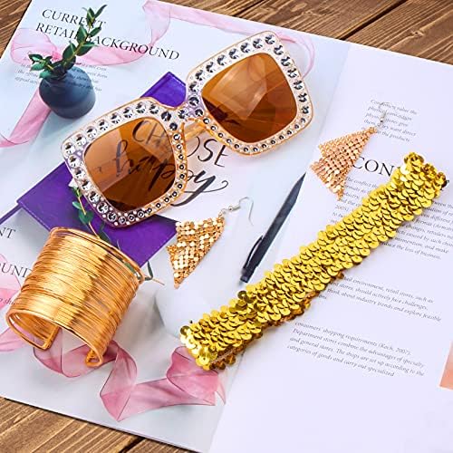 Juego de 5 piezas de accesorios de discoteca retro de los 70 Yewong, gafas de sol cuadradas brillantes de gran tamaño, gargantilla con diamantes de imitación, diadema brillante, brazalete