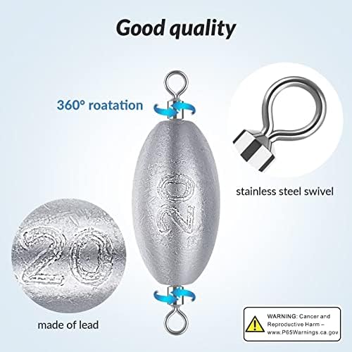 - 1. PREMIUM QUALITY FISHING WEIGHTS: Well made sinkers, the metal barrels are smoothly finished, and the rings of the swivels are strongly built and many rig applications, suit for many different types of freshwater and light / inshore saltwater rigs.