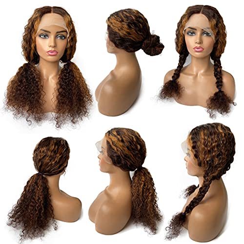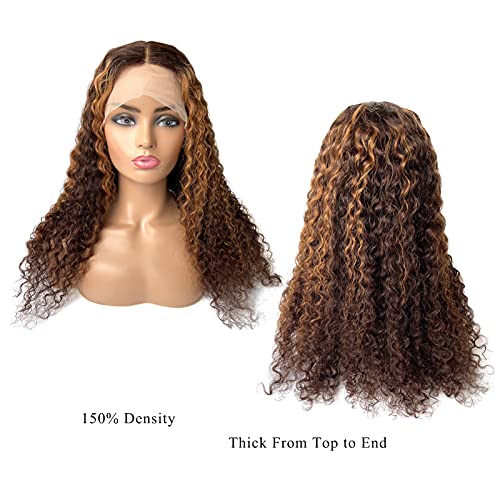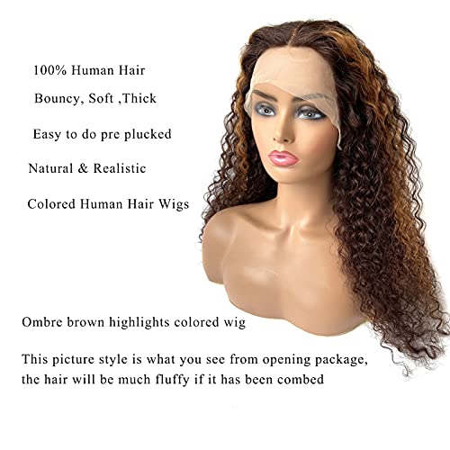 #2T30P2-Brown Highlights Colored Human Hair Wig