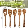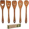 MFC 5-Piece Wooden Cooking Spoons - Kitchen Set from Natural Cherry Wood - Wooden Spoons for Cooking - Funny Utensil Set with Smiley Faces - Cooking Multipurpose Wood Utensils