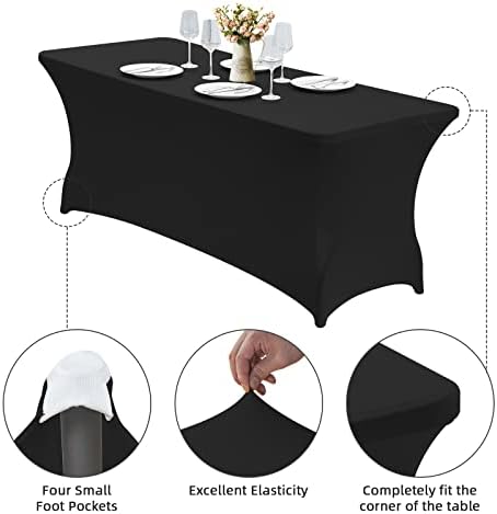 CWK 6FT Waterproof Stretch Spandex Table Cover for Rectangular Tables - Elastic Fitted Tablecloth for Folding Tables,Wrinkle Resistant Table Cloth for Parties, Weddings, Banquets & Events (Black)