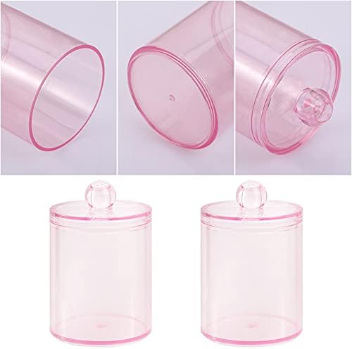 Tbestmax 2 Pack Qtip Holder Bathroom Jars Canisters for Cotton Ball Swab Pad Storage Dispenzer, Pink 10-Ounce