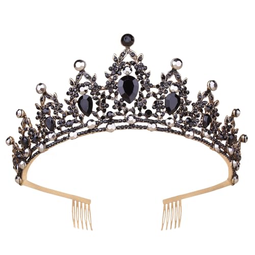 - ♕All Vofler crowns hair accessories are 100% handcrafted, this women costume headband is handmade by durable brozen-plated alloy, black rhinestone, sparkle crystals-shining bright like diamond and glittering mysteriously to make you elegant and cool