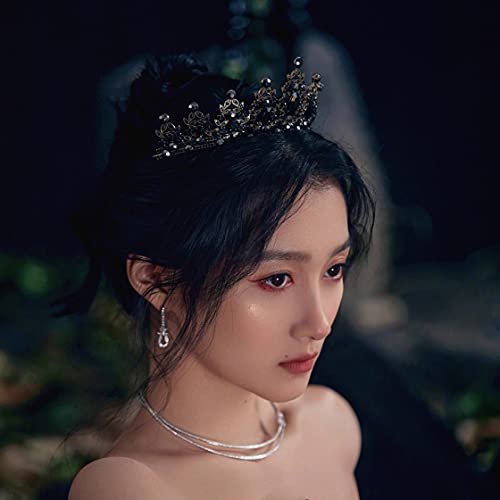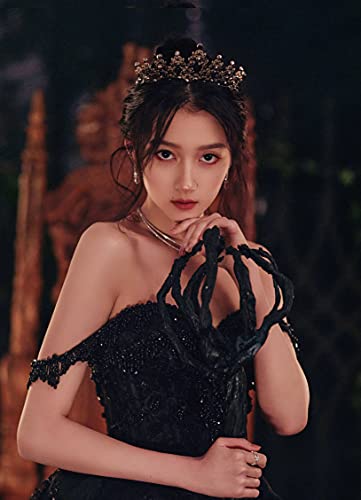 Black Swan Costume Crown, Vampire Evil Queen Black Tiara - Vofler Halloween Gothic Witch Women Headpiece Hair Accessories for Bride Princess Girl Birthday Cosplay Party Prom Quinceanera Homecoming