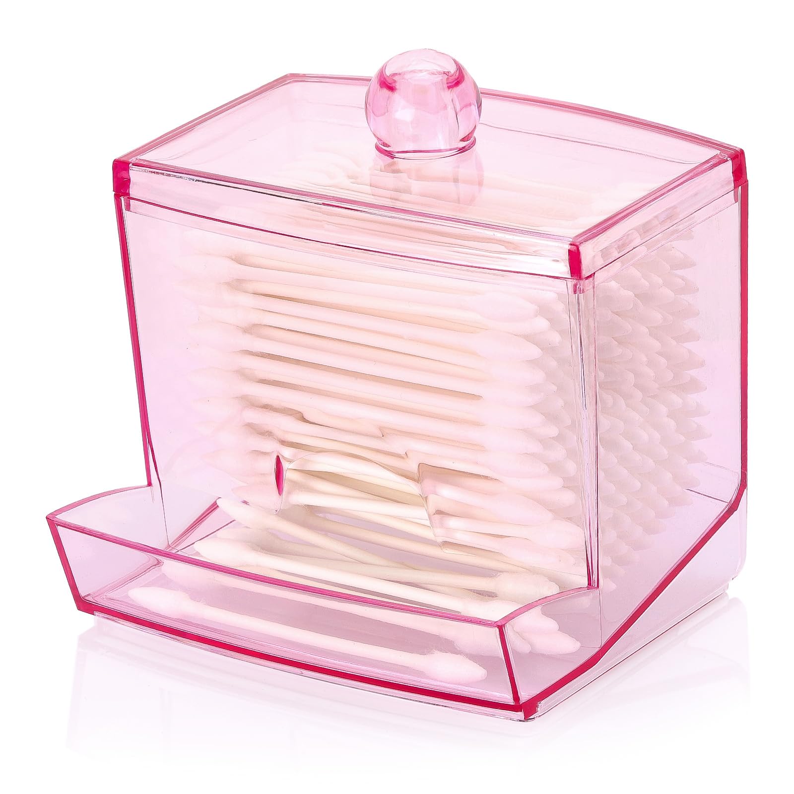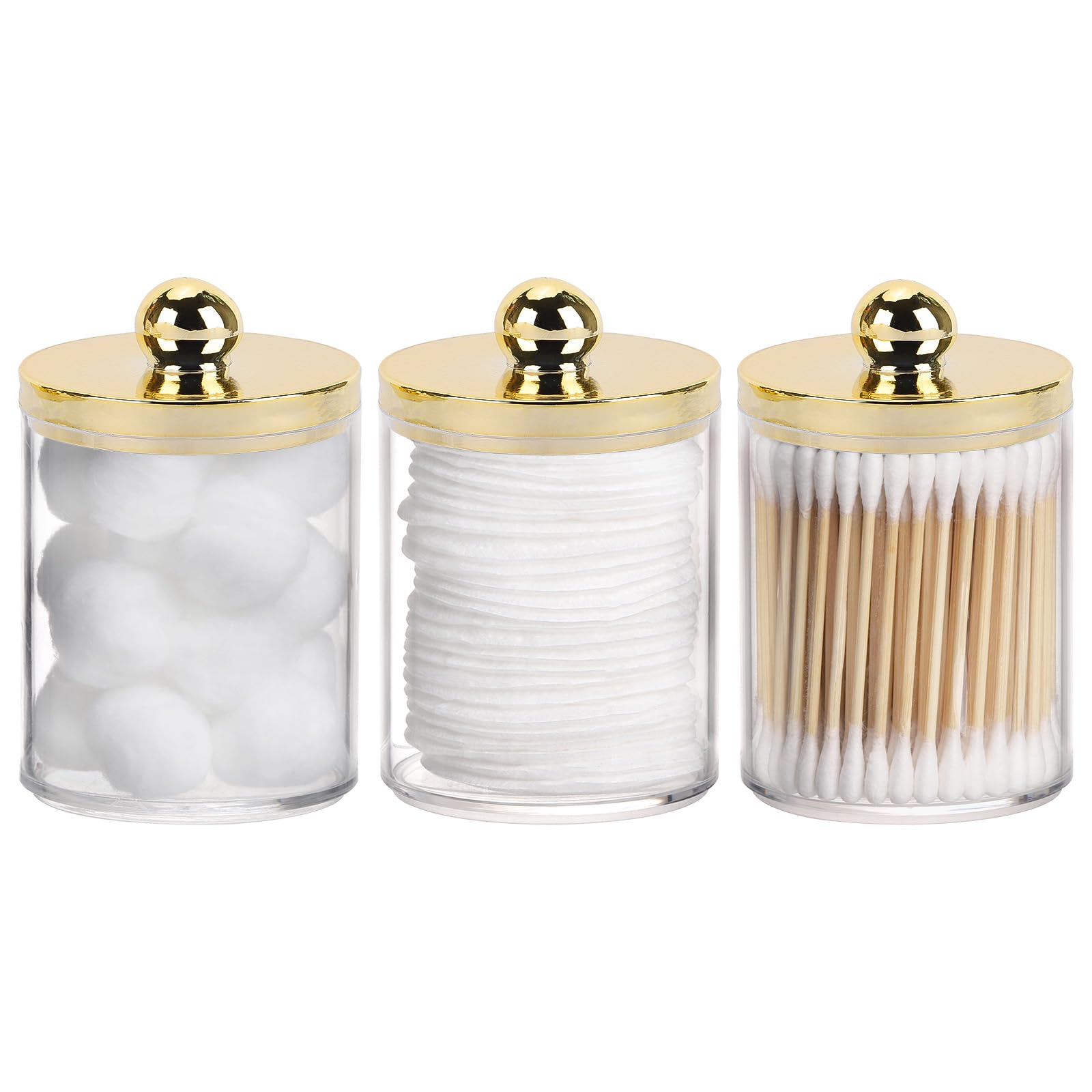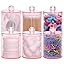 Tbestmax 3 Pack Cotton Swab Ball Pad Holder, 10 Oz Qtip Apothecary Jar Pink Makeup Organizer, Bathroom Containers Dispenser