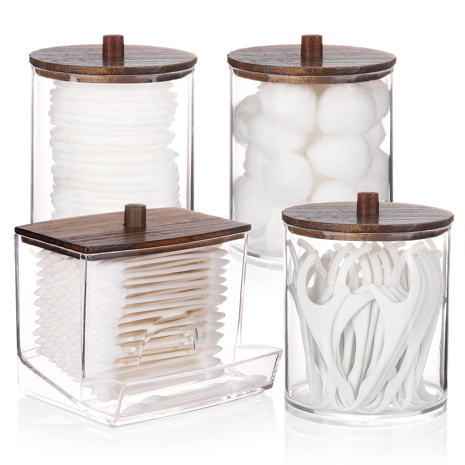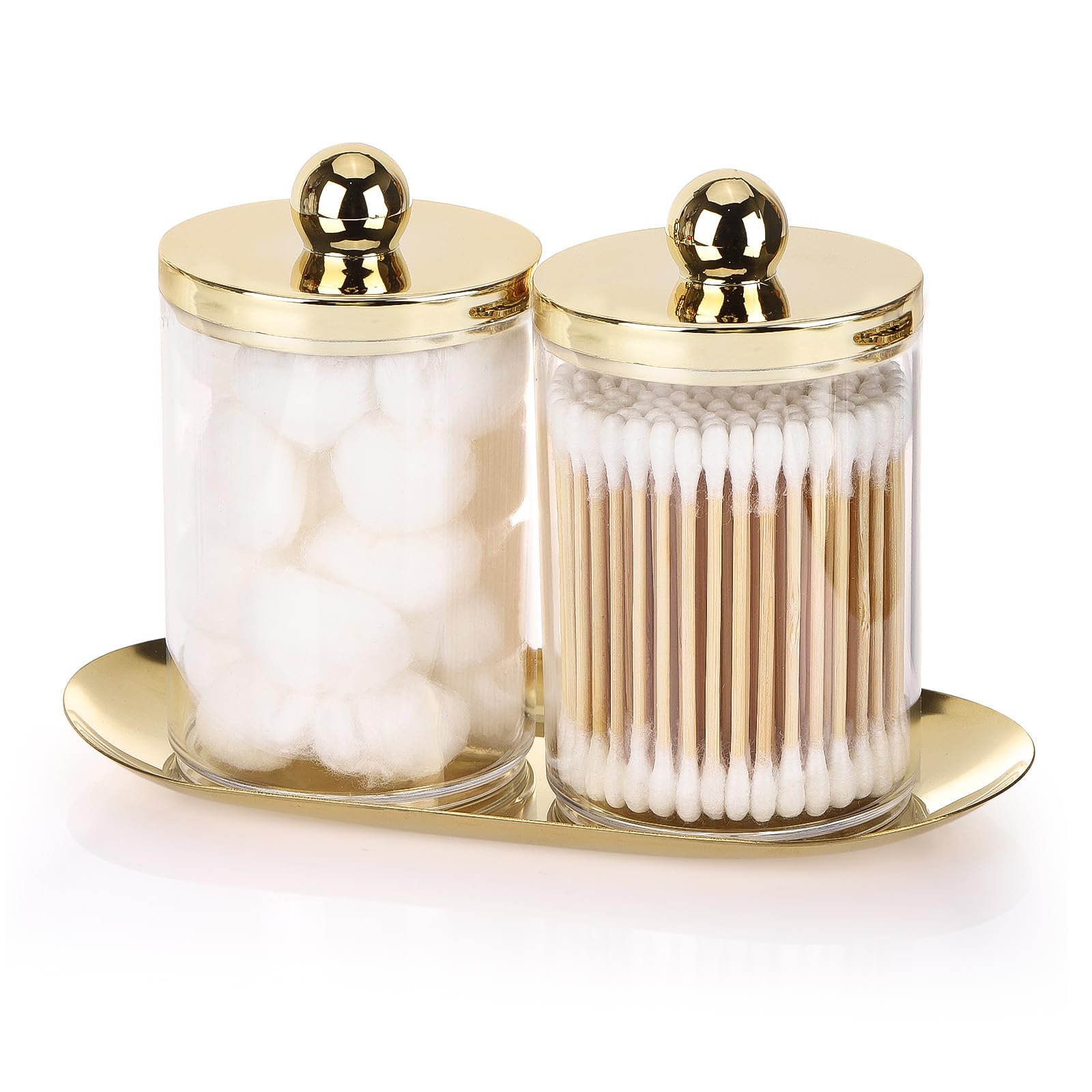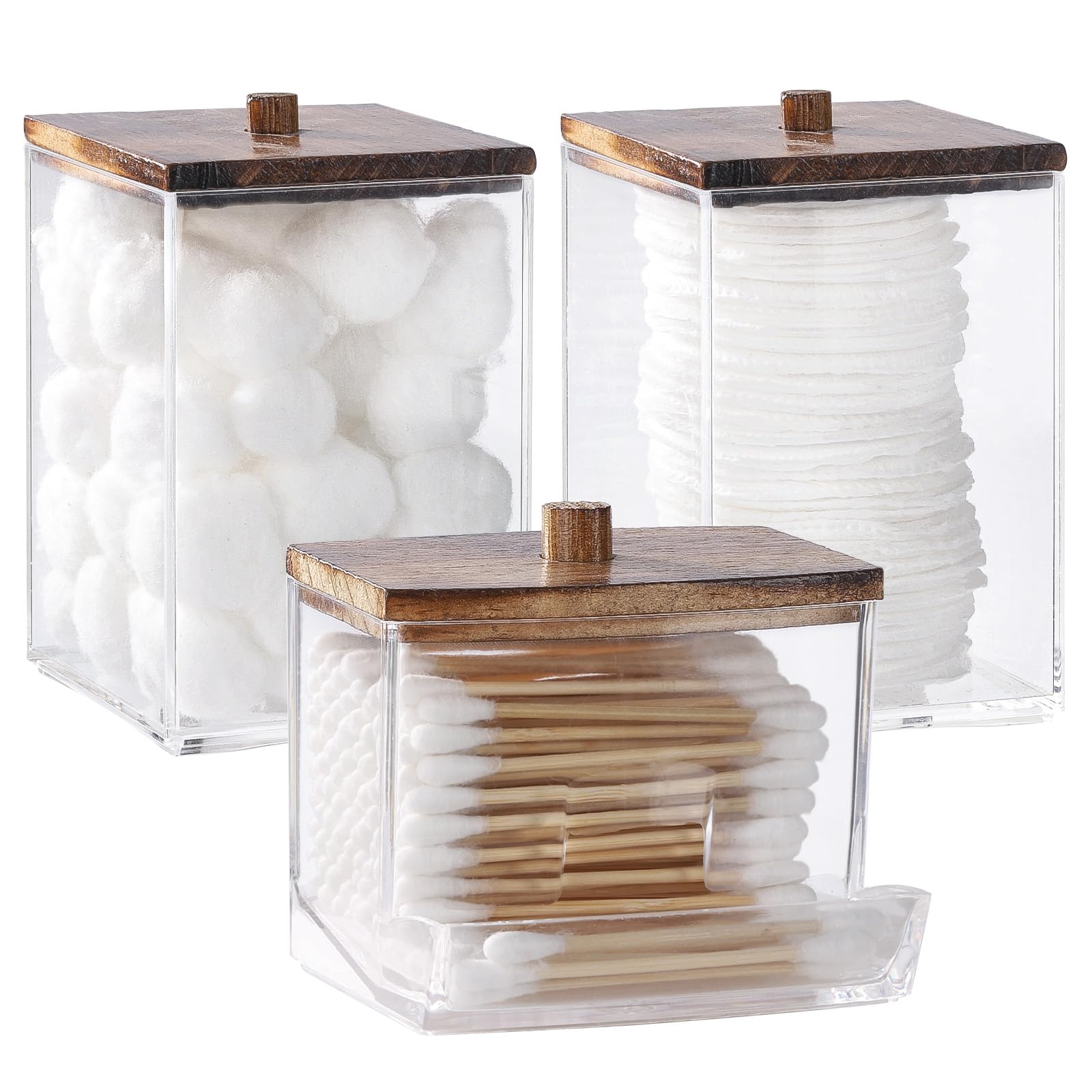 Introducing the Tbestmax 3 Pack Cotton Swab Ball Pad Holder, a perfect addition to your bathroom or vanity. Each holder has a diameter of 2.7 inches, a height of 4.1 inches, and a thickness of 2 mm, making it lightweight yet sturdy at 7.5 ounces. The hard plastic material resembles glass, ensuring durability and safety for your family. This compact organizer can hold many items without taking up too much space, and its three lids fit tightly to keep dust at bay. With this 3-piece set, you can store and access your cotton swabs with ease and style.