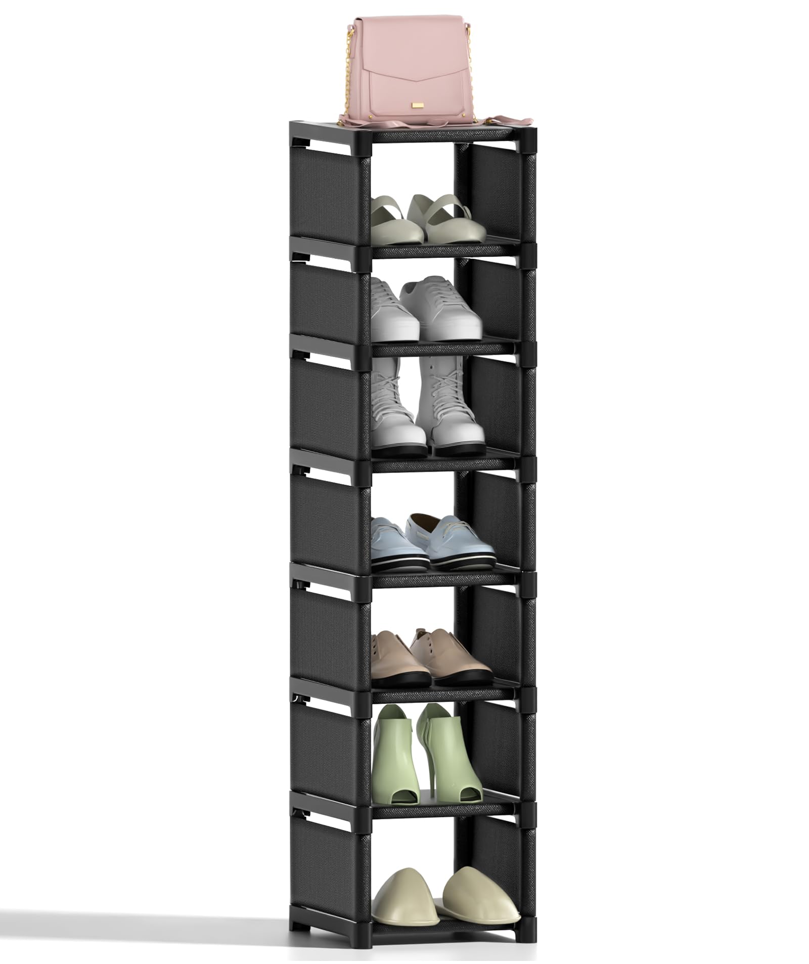 - Suitable Occasions: This narrow shoe tower has a small footprint, the tall and narrow vertical shoe rack is ideal for closets, cabinets, corridors, entrances, garages, front doors and dormitories. Enjoy a neat and beautiful home feeling