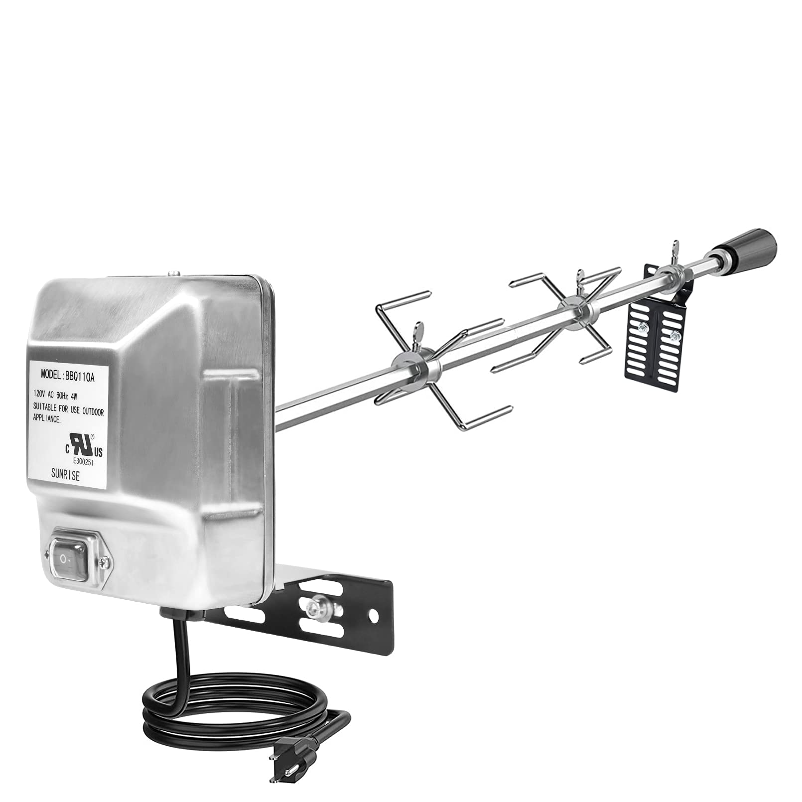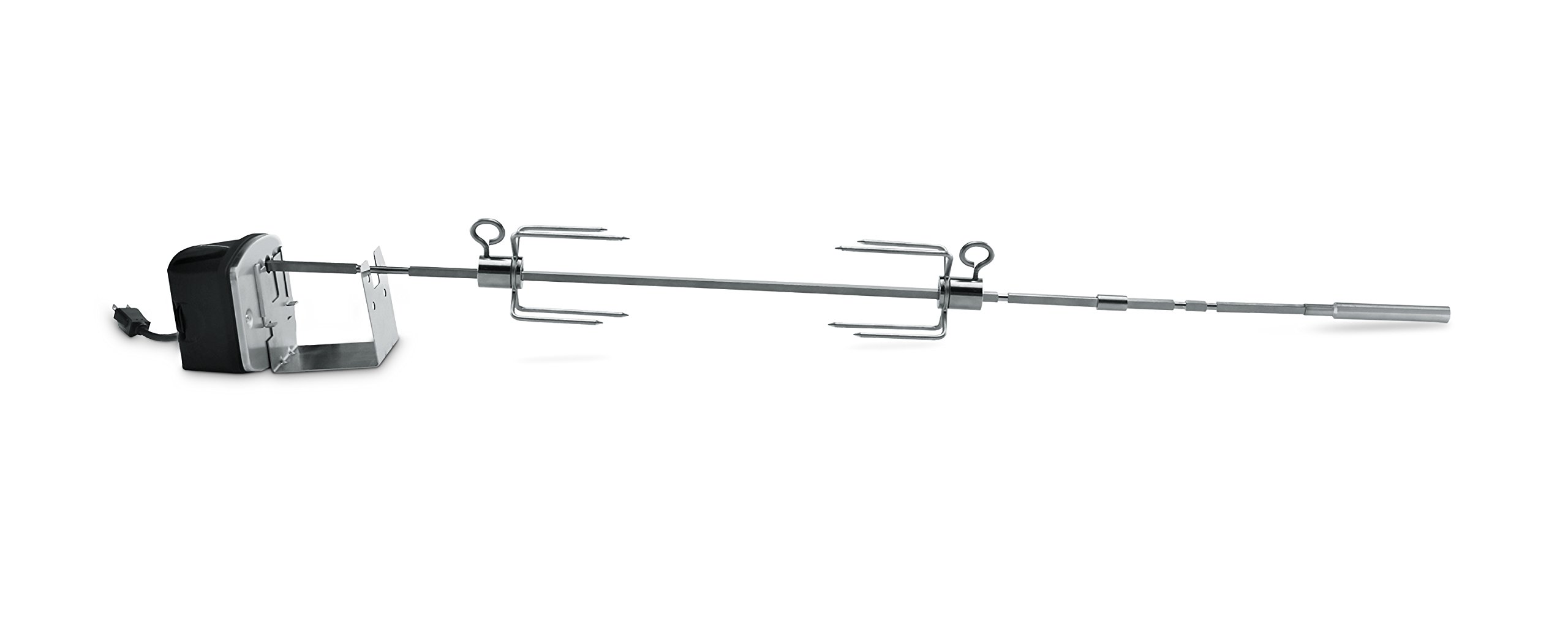 - 【KIT DE ASADOR ROTISSERIE UNIVERSAL CON PAQUETE COMPLETO】: suministrado con hardware de montaje totalmente en 23 piezas incluyendo 1 x Motor 120V 4W, 2 x pinchos de 14 pulgadas que pueden ser unidos, 2 x 4 tenedores, 1 x eje, 14 x tornillos de fijación, 1 x soporte de motor y 2 x soportes de varilla de asado; Se adapta a la mayoría de los asadores de 2 a 6 quemadores, este kit le proporciona casi todo lo que necesita para cocinar un asado en su fiesta de barbacoa