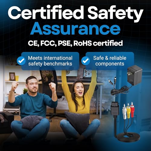 AC Power Supply + Audio Video RCA AV Cable Adapter Cord To External TV Screen Monitor For Super Nintendo SNES Nes Genesis 1 Systems Game Console Bundle Set