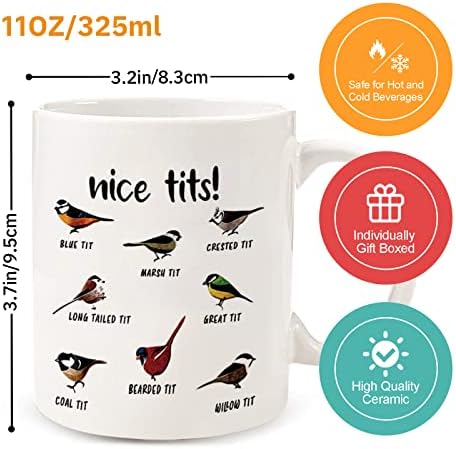 Jigfoxy Nice Tits Bird Mug, Funny Birds Coffee Mugs, Gifts for Bird Lovers Women Men - 11 Oz