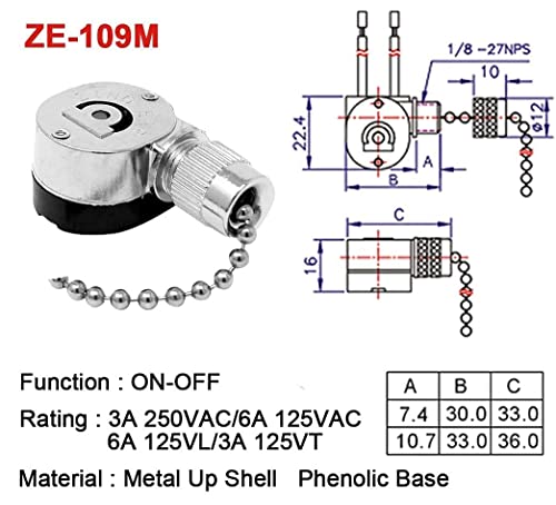 - Model: ZE-109M (with pull chain) Function: ON-OFF.