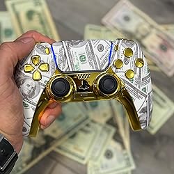 MODDEDZONE Custom Wireless Controller compatible with PS5 Exclusive Unique Designs | Personalize Your Gaming Experience and Exceptional Performance| Compatible with Playstation 5 (Gold Money)