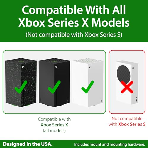 - COMPATIBLE con todos los modelos de XBOX SERIES X (incluyendo los modelos de 2024 y 2025). Incluye un soporte de pared premium para Xbox Series X y hardware de montaje. (Xbox y controles no están incluidos).