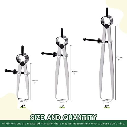 - 【What you Get】The package comes with 3 different sizes of divider compass: 4 inches/6 inches/8 inches. The 4 inches metal compass divider can draw circles of up to 8 inches; The 6 inches scribe divider tool can draw circles of up to 12 inches; The 8 inches scribe compass can draw circles of up to 16 inches. Three sizes a set will meet your different demands.