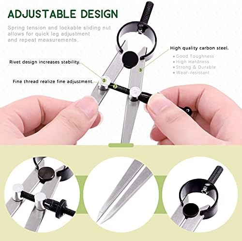 - 【High-quality Drawing Tool】 Spring wing divider is made from high carbon steel with anti-rust and anti-corrosion finish, smooth appearance, good toughness, high hardness, wear-resistant. Finely threaded for quick adjustment; Rivet design for stability. Hard point tip for accurate draw. Fine polishing, comfortable hand feel, accurate measurement.