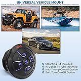 - Features: Universal Mount BT Control Unit Built-in Wireless BT Audio Receiver Marine Grade Construction Water-Resistant, Weatherproof Design Connect & Stream Audio from Additional External Devices Aux (3.5mm) Input Full-Range Stereo Sound Reproduction Integrated Power Wiring Harness Pre-Amp RCA Out to Any OEM/Factory-Made Mono-Block/Full-Range Amplifier USB Input to Play Your Favorite Music Files Flush Mount Mounting Kit Included Universal Vehicle Mounting Can be In-Console Flush Mounted Anti-Thump On/Off Option Soft Turn On/Off Option Overload & Power Protection Circuitry Great For Cars, Trucks, ATV’s, UTV’s, 4x4’s, Boats, Marine Watercrafts, & PowerSport Vehicles Wireless BT Music Streaming: Simple & Hassle-Free Pairing Instant Wireless Audio-Streaming Receiver Works with All of Today's Latest Devices Smartphones, Tablets, Laptops, Computers, etc. Wireless BT Version: 5.0 Wireless BT Network Name: 'PyleUSA' Wireless Range: Up to 30+ ft What's in the Box: (1) Wireless BT Control Unit (1) 3.5 mm Auto Connection Cable Technical Specs: Marine Grade Waterproof Rating: IPX6 T.H.D:≤ 0.1% S/N Ratio:≥ 80 dB Channel Separation:≥ 60 dB Frequency Response: 20 Hz - 20 kHz Fuse: 5A RCA Line Out (Pre-Amp): 1 Pair (Left & Right) 2.5Volts Aux Line Input: Plug 3.5mm Remote Out: 200mA USB Player: 4FT Extension Cord Cut-Out Diameter: 3” -inches Mounting Depth: 2.05” -inches Power: DC 12V-14.4V Total Unit Dimensions (Lx W x H): 3.7” x 3.7” x 2.76” -inches (Flush Mount)