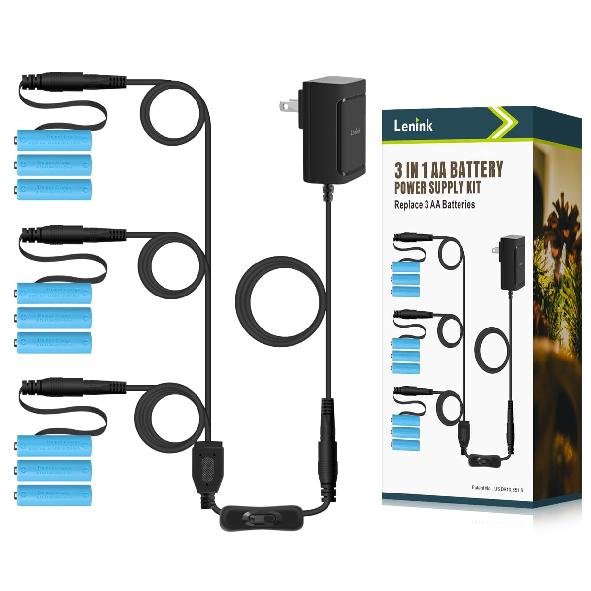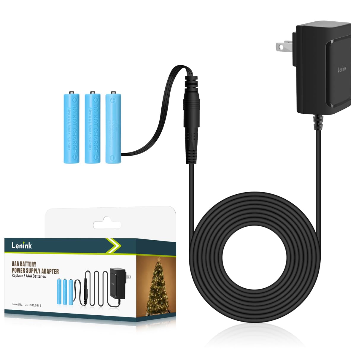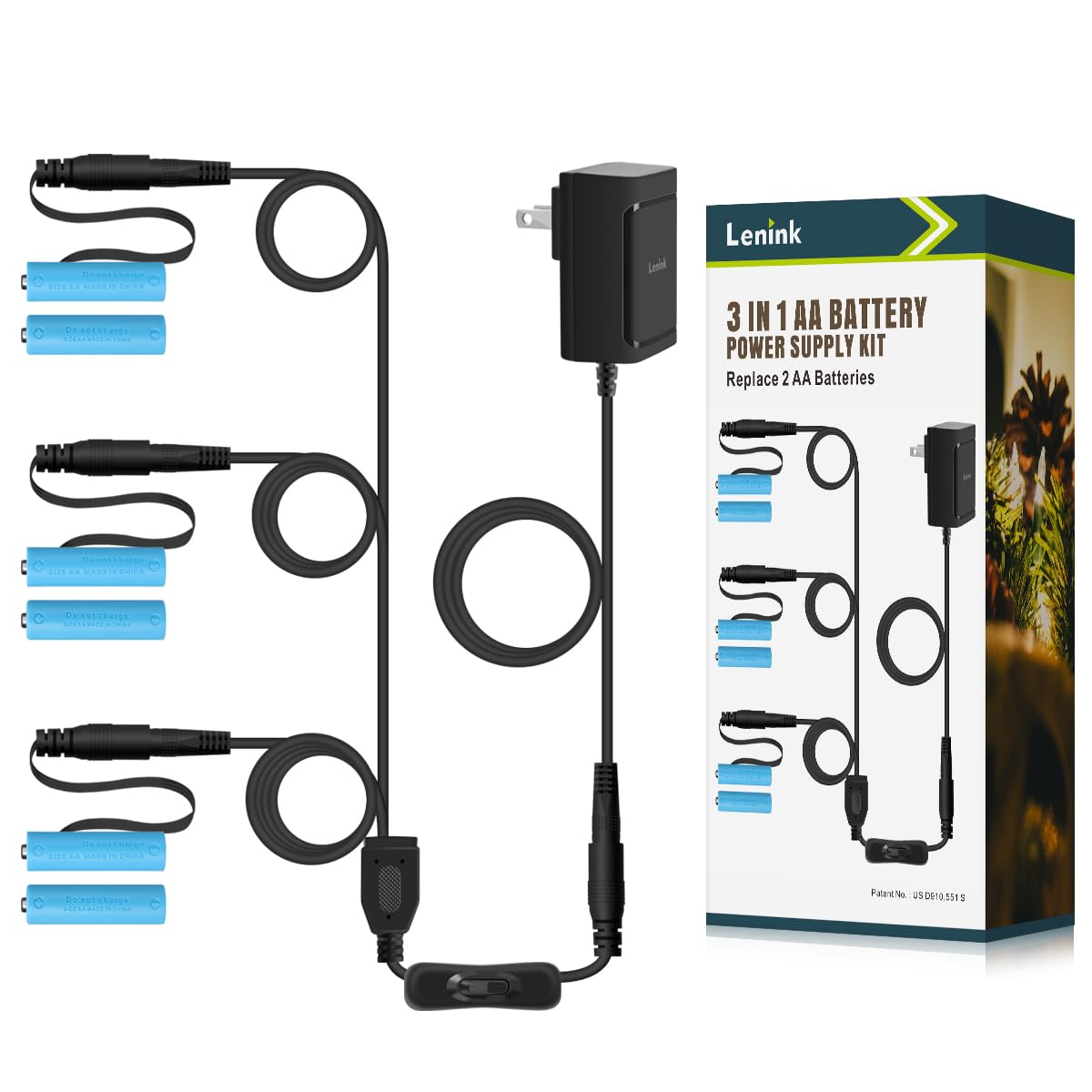 Lenink AC Power Supply Adapter for AA Battery, Replace 2 AA Battery for Pumpkin Lantern, LED Light, Thermostat, Table Lamp, Motion Sensor Trash Can (Black)