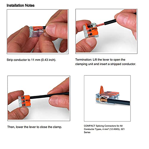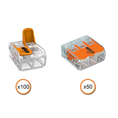 Paquete de surtido de conectores de cable de tuercas de palanca WAGO Serie 221 150 piezas (100) 2-puerto 221-412 (50) 3-puerto 221-413