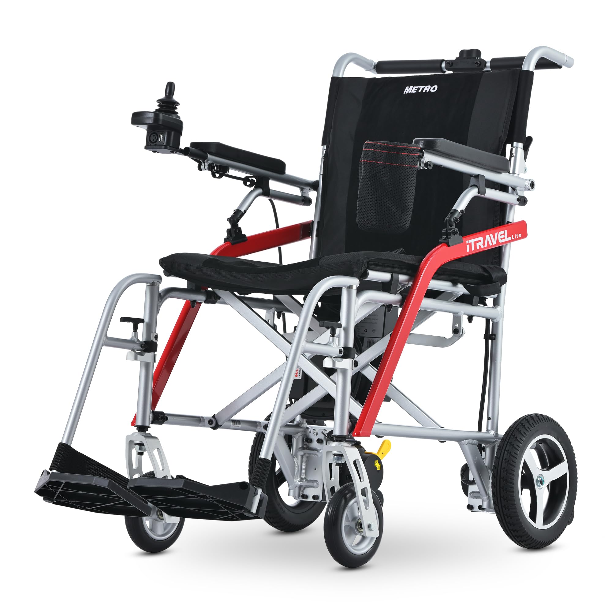 - [Convenient Design]: The front panel of Metro's folding mobility scooter lightweight comes with a cup holder for easy storage and a cell phone charging socket. The 9-inch flat free tires and double spring depressurization minimize impact and effectively reduce vibration. These power scooters for adults mobility convenient design elements make your rides more enjoyable.