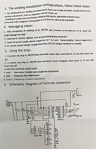 - 【Debugging steps】After completion of welding on IC, XR2206, you need to pay attention to the direction of IC, or insert the might damage the chip! Check IC for errors, if any, please correct in time.
