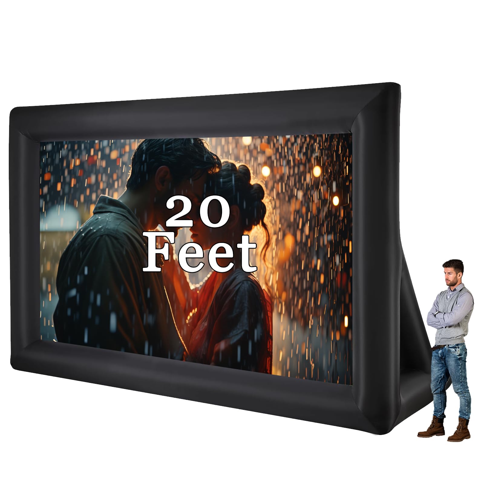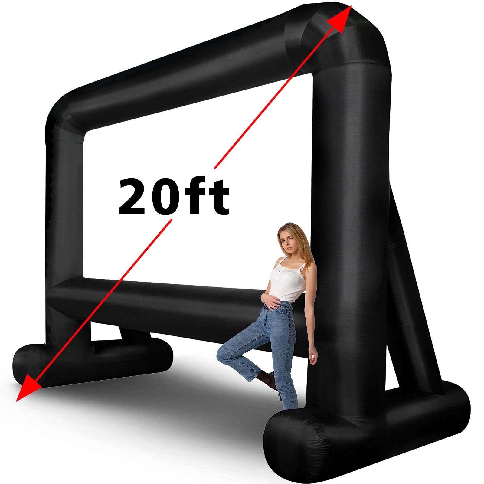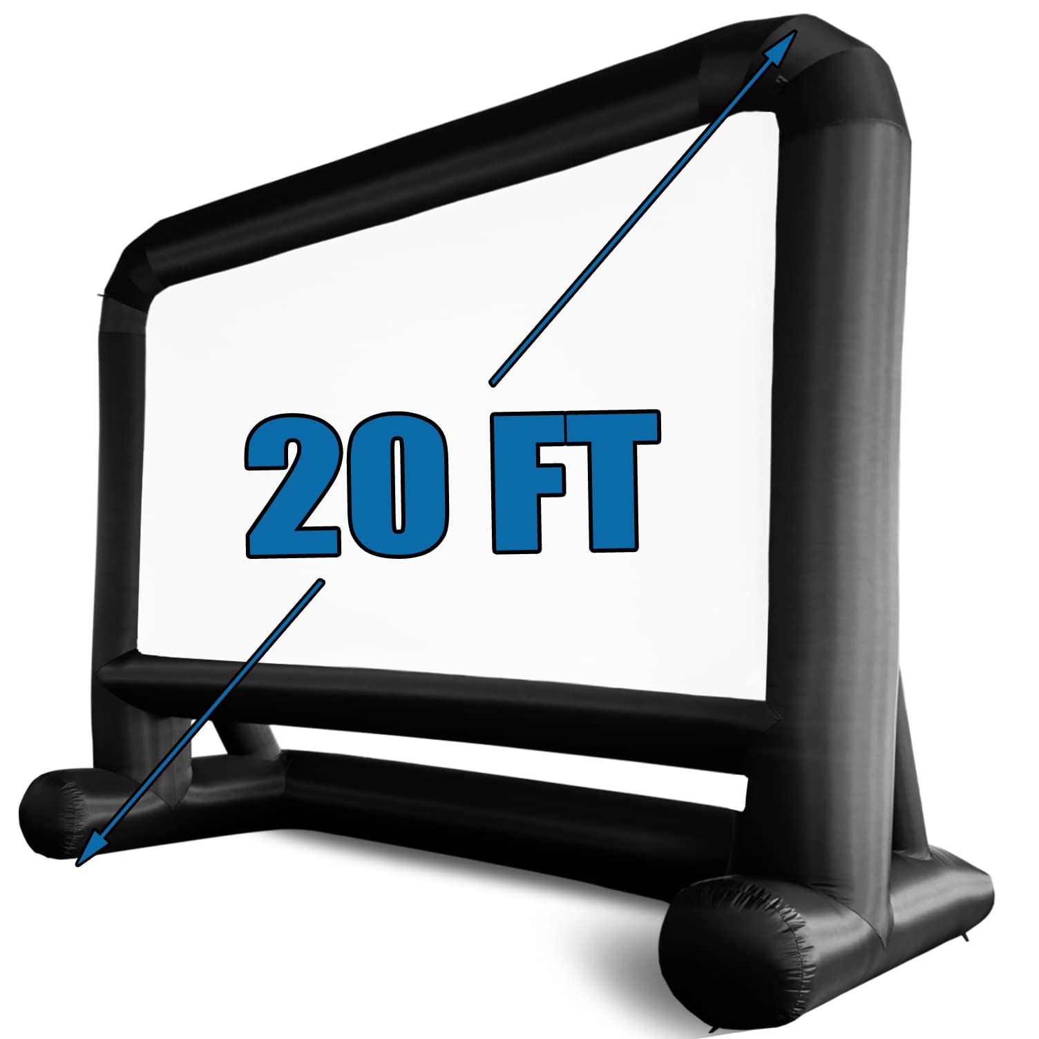 20 Feet Inflatable Outdoor and Indoor Theater Projector Screen - Includes Air Blower, Tie-Downs and Storage Bag - Portable, Supports Front and Rear Projection
