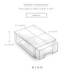 - Introducing BINO's Clear Stackable Storage Drawer – the ultimate solution to decluttering and organizing your living spaces with style and ease. These durable, low-profile drawers are designed to maximize your storage space effortlessly, fitting seamlessly into pantry shelves, fridges, and any nook or cranny you have in mind. With their see-through design, you can say goodbye to rummaging and hello to instant visibility, making them ideal for small pantries and crowded fridge shelves. Crafted from crack-resistant BPA-free plastic, these drawers are built to last, while their versatile and elegant design adds an element of sophistication to any room, from the kitchen to the bedroom. Embrace a clutter-free lifestyle and elevate your organization game with BINO's Clear Stackable Storage Drawer – where style meets functionality.