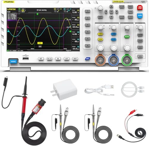 FNIRSI 1014D Osciloscopio 2 en 1 Osciloscopio Digital Generador de Señales DDS, Sonda de Alto Voltaje 100X, 2 Canales 100MHz de Ancho de Banda 1GSa/s de Tasa de Muestreo Espacio de Almacenamiento Integrado de 1GB