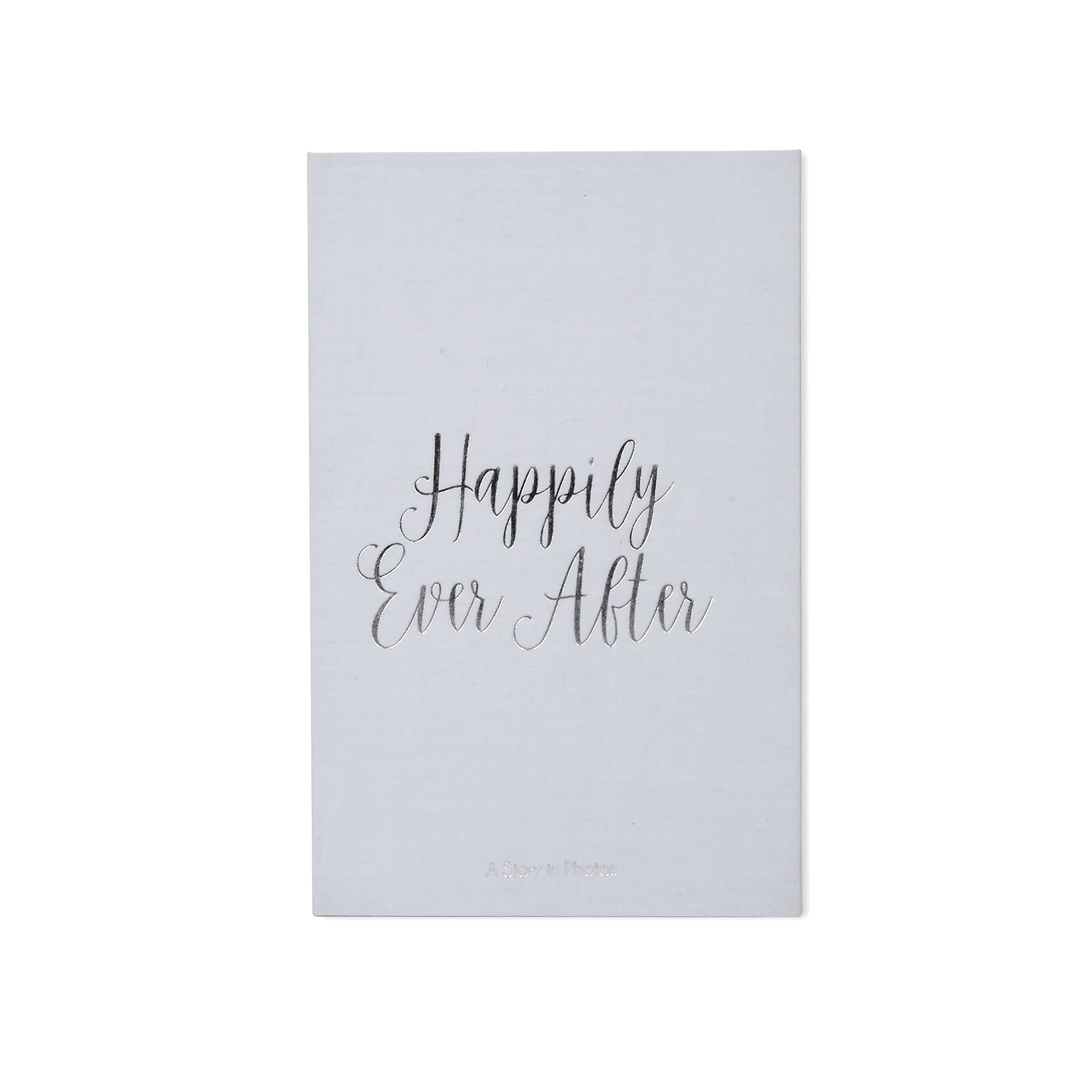 A luxurious wedding photo album, this hardback photo book is wrapped in cool gray linen, accented with the phrase "Happily Ever After" in silver metallic foil. A decorative photo book that emulates the look of a lavishly illustrated book, opening to a ring binder of 30 blank black pages ready to protect and display your cherished wedding photos. Feature the book proudly on your coffee or end table, or give it as a wonderful gift for the bride and groom.