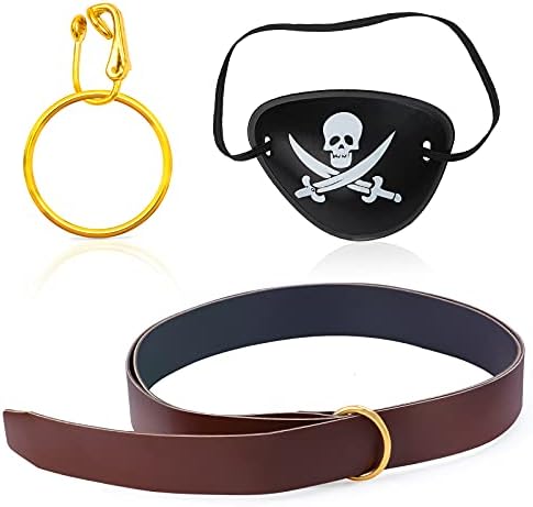 Yewong Pirate Costume Accessories Set Durag Long-Tail Pirate Cap Pirate Sash Eye Patch Earring Pirate Captain Dress Up Set