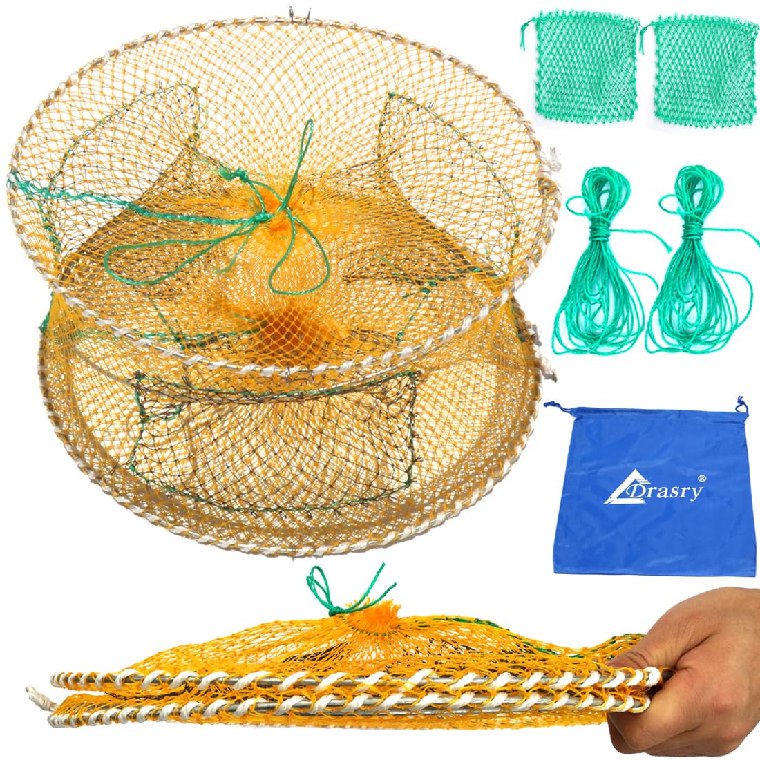 - EASY TO FOLD AND UNFOLD: Foldable fishing bait trap cast net cage, fish net is very easy to use, when pull the top rope, then cast nets for fishing can be quickly opened, needn't install, shrimp net is very convenient to use.