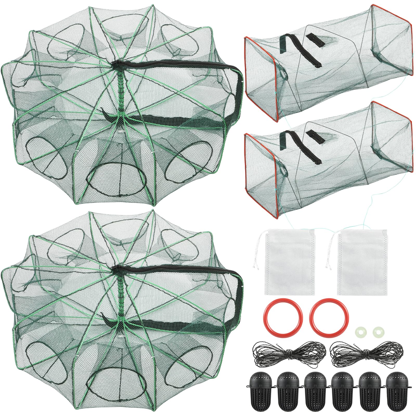 - MULTI PURPOSE: Fishing net trap with six enter design are great for catching smelt, eels, crab, lobster, minnows, shrimp and crawfish, fish traps for small fish help you catching various fishes, lobster trap crab net bring you much joy.
