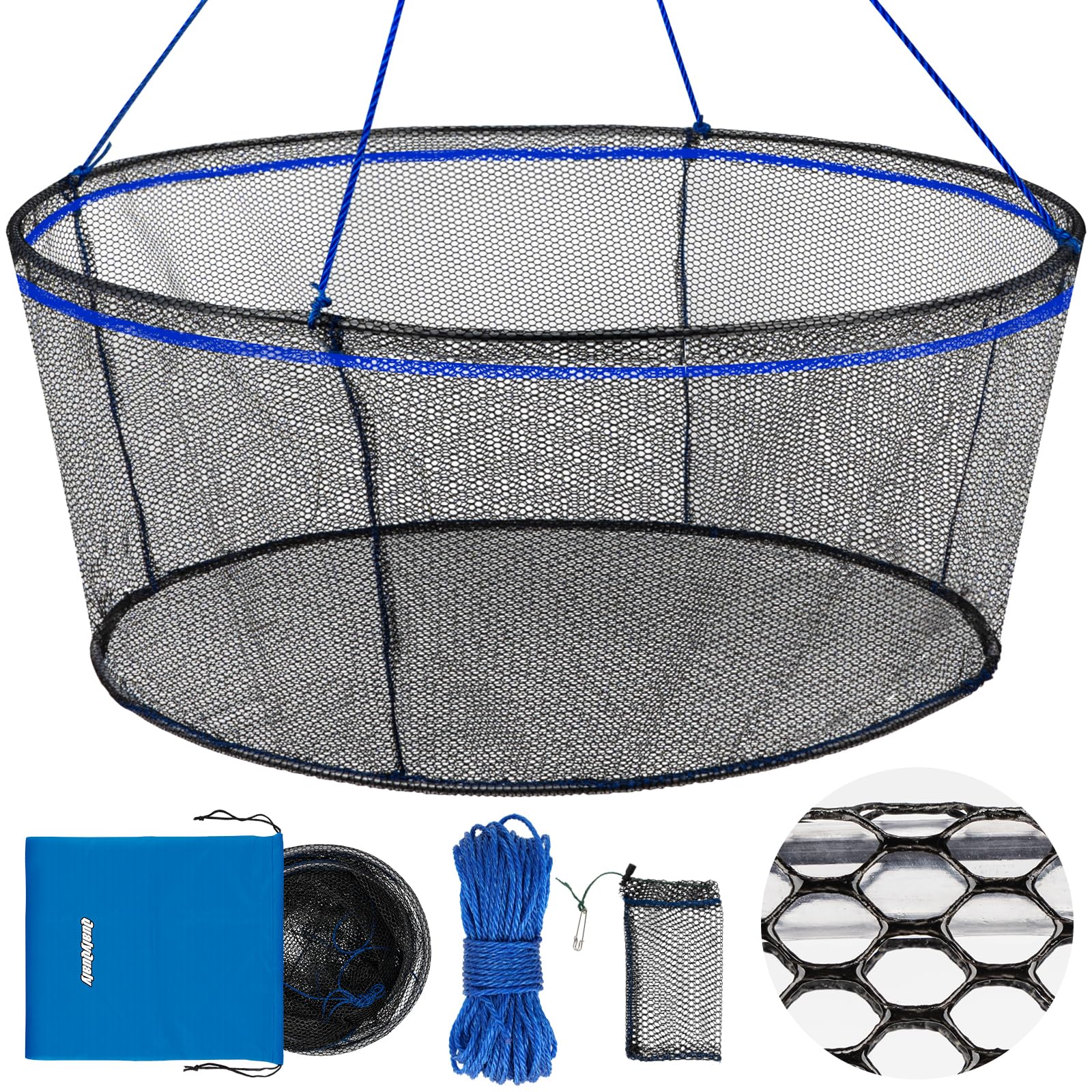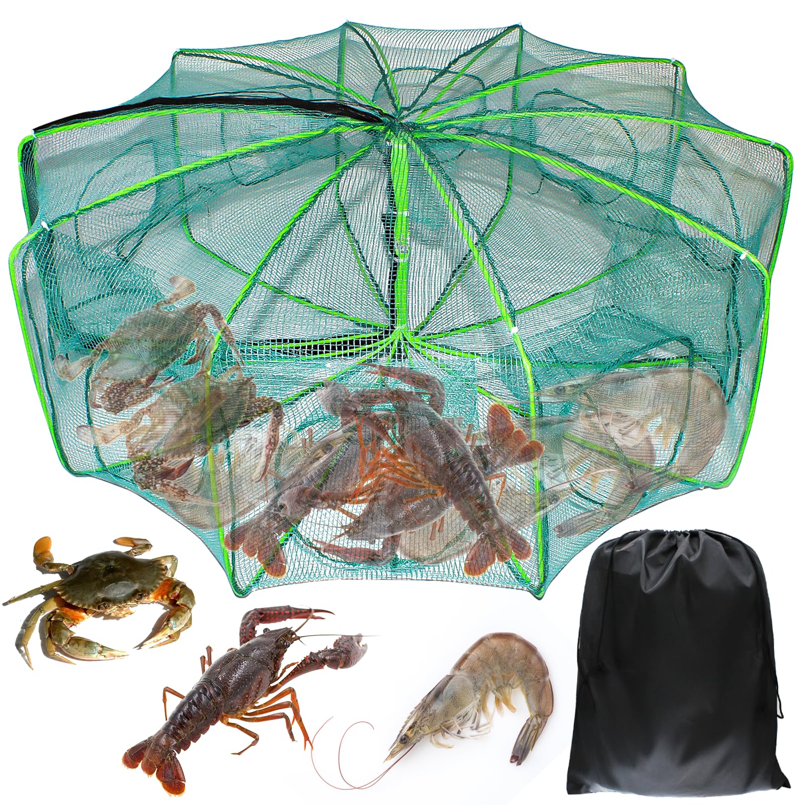 - PROFESSIONALLY DESIGN: Fishing net trap with six enter design are great for catching smelt, eels, crab, lobster, minnows, shrimp and crawfish, live bait bucket help you get more when fishing. Catfish trap is well designed.