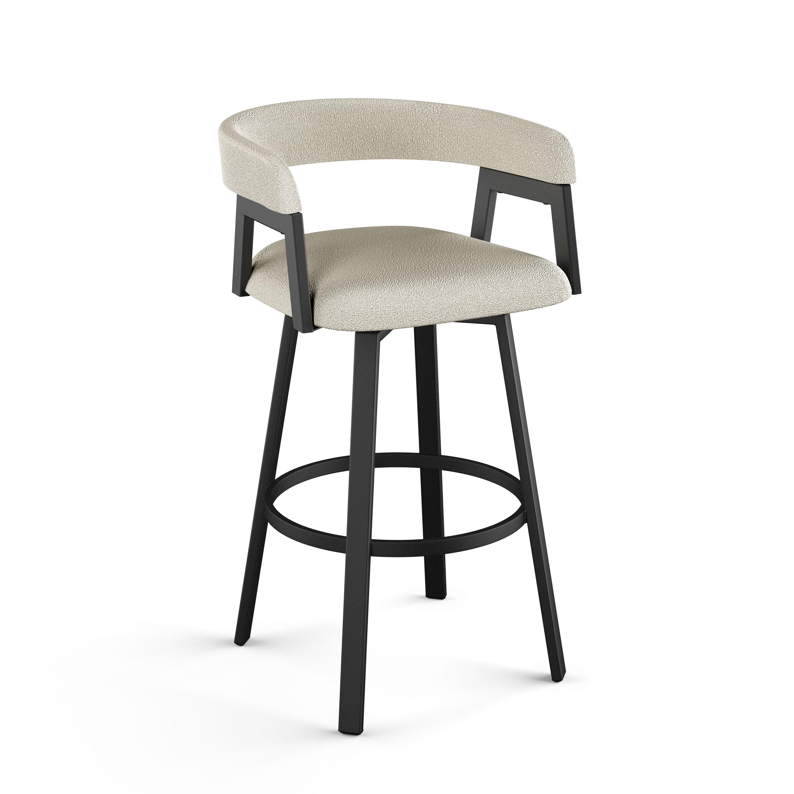 Amisco Browser 26" Swivel Counter Height Barstool, Upholstered with Back for Kitchen Island or Bar - Light Grey Polyester / Black Metal