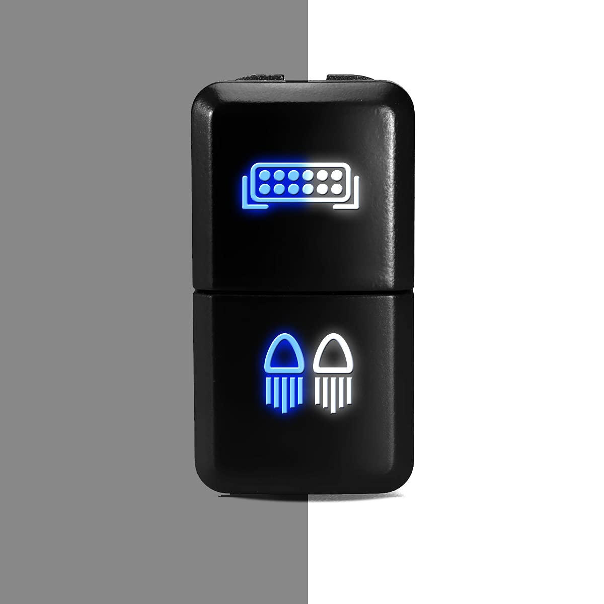 Dual Function Switch - Compatible with the Toyota OEM style light switch (1.28" x 0.87", 33 x 22mm) Switch On Color is White / Switch Off Color is Blue (when dashboard is on) PERFECT FIT - This high quality SPST (Single Pole Single Throw) ON-OFF push switch is manufactured to fit in the factory space available in your Toyota car. Gives your vehicle an upgraded look with this backlit switch. STURDY CONSTRUCTION - The switch is made out of heavy duty ABS plastic and come in a mate black surface color. The surface size is 1.28" x 0.87". The switch comes with short circuit protection to protect your vehicles, ensure years of service. Safe and long lasting COMPATIBILITY - Replacement for Toyota Sequoia 2008-ON / Replacement for Toyota Highlander 2008-ON / Replacement for Toyota Tacoma 2012-ON (Center ONLY) / Replacement for Toyota Tundra 2008-ON / Replacement for Toyota 4Runner 2010-ON / Replacement for Toyota RAV4 2008-2012 / Replacement for Toyota Yaris 2010