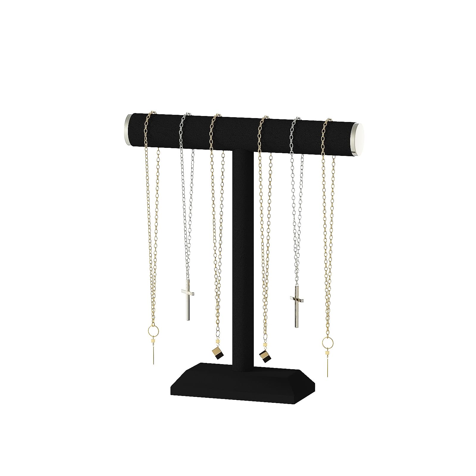 - Jewelry display stand contains a base, two T-Bar rods and is very easy to assemble