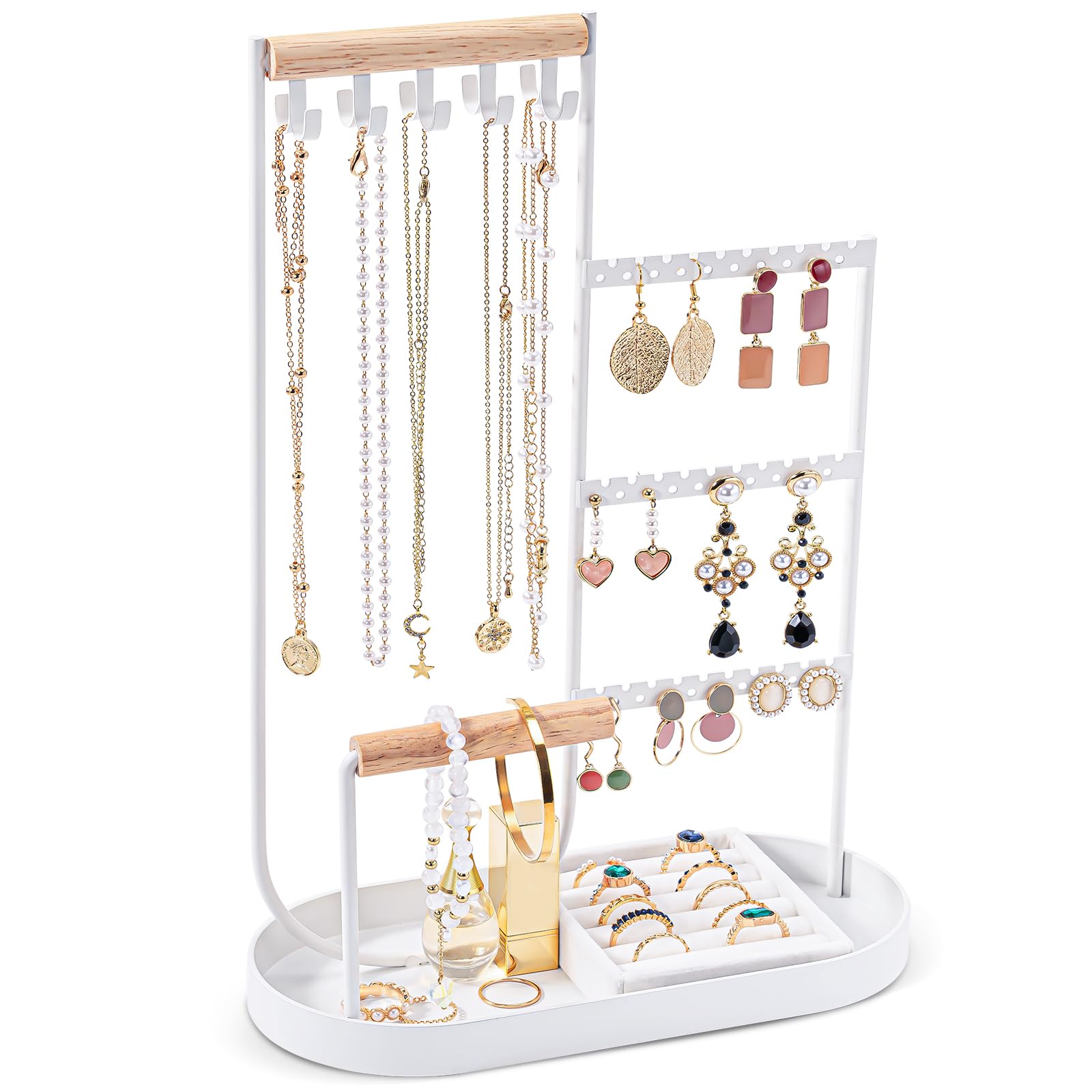 - This necklace organizer stand is powerful and can store your long necklaces, bracelets, hair bands, rings, earrings, watches and other accessories at the same time