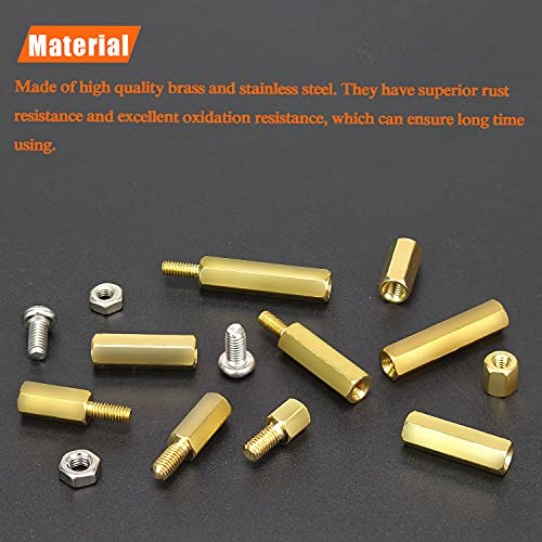 - 【Aplicaciones amplias】Los hilos de los espaciadores de latón son profundos y claros sin rebabas. Con un amplio espectro de longitud, hilo y diámetro, esta colección de tornillos debería ser casi universal y cubrir la mayoría de los proyectos de bricolaje de hardware para computadoras de escritorio y algunos dispositivos electrónicos.