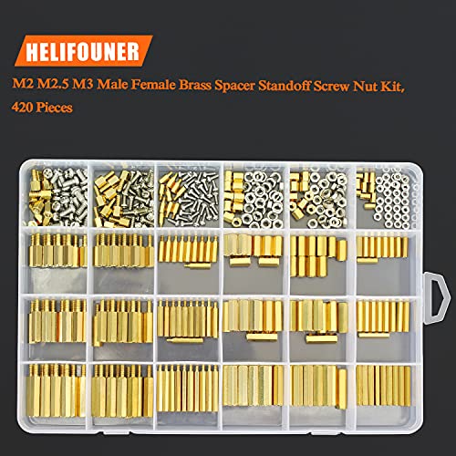 - 【Tamaños】Los espaciadores de latón hembra a hembra M2 M2.5 M3 tienen longitudes de 5mm, 10mm, 15mm, 20mm; El tamaño del tornillo es M2 M2.5 M3, el paso de rosca es de 0.4mm, 0.45 mm, 0.5mm, un total de 420 piezas/30 tamaños de los espaciadores, tornillos y tuercas más utilizados en un estuche de plástico, diferentes tamaños pueden satisfacer sus diferentes necesidades.