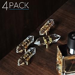 - This luxury handle made of a clear glass piece with a golden Brushed Brass base to create a fashion modern cabinet hardware which bring the Comfortable touch instead of metal cold feeling. The Crystal Palace collection brings the glitz and glamorous of diamond to your hardware project. Sophisticated pieces constructed with effortless elegance, luxurious feeling, and quality beyond comparison.Sparkle to any space and work especially well on bathroom vanities and closets.