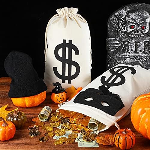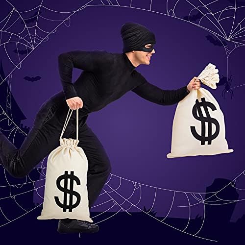Frienda 16 Pieces Robber Costume Set Include Canvas Dollar Sign Money Bags Knit Beanie Cap Eye Mask Gloves for Halloween Thief Cosplay Burglar Theme Party Accessories