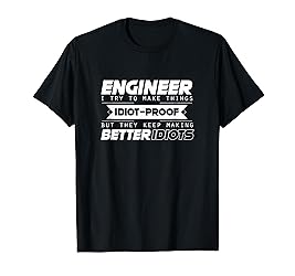 THIS APPAREL GETS ATTENTION - "Engineer I Try To Make Things Idiot Proof But They Just Keep Making Better Idiots" saying is a funny everyday novelty outfit for laughs. Wear it when you're annoyed, anti-social. Engineers, Nerds, Geeks, Science, Computer. The best present idea for a Birthday, Anniversary or a present for Christmas. It's a trendy, everyday outfit with novelty graphics for adults and kids. This bold design stands out and get attention and compliments Lightweight, Classic fit, Double-needle sleeve and bottom hem